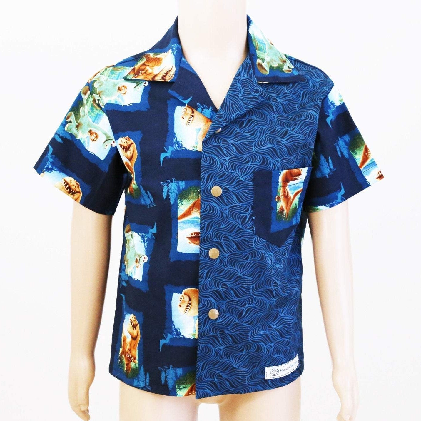 Shirt - Dinosaurs with Contrasting Blue Front Panel
