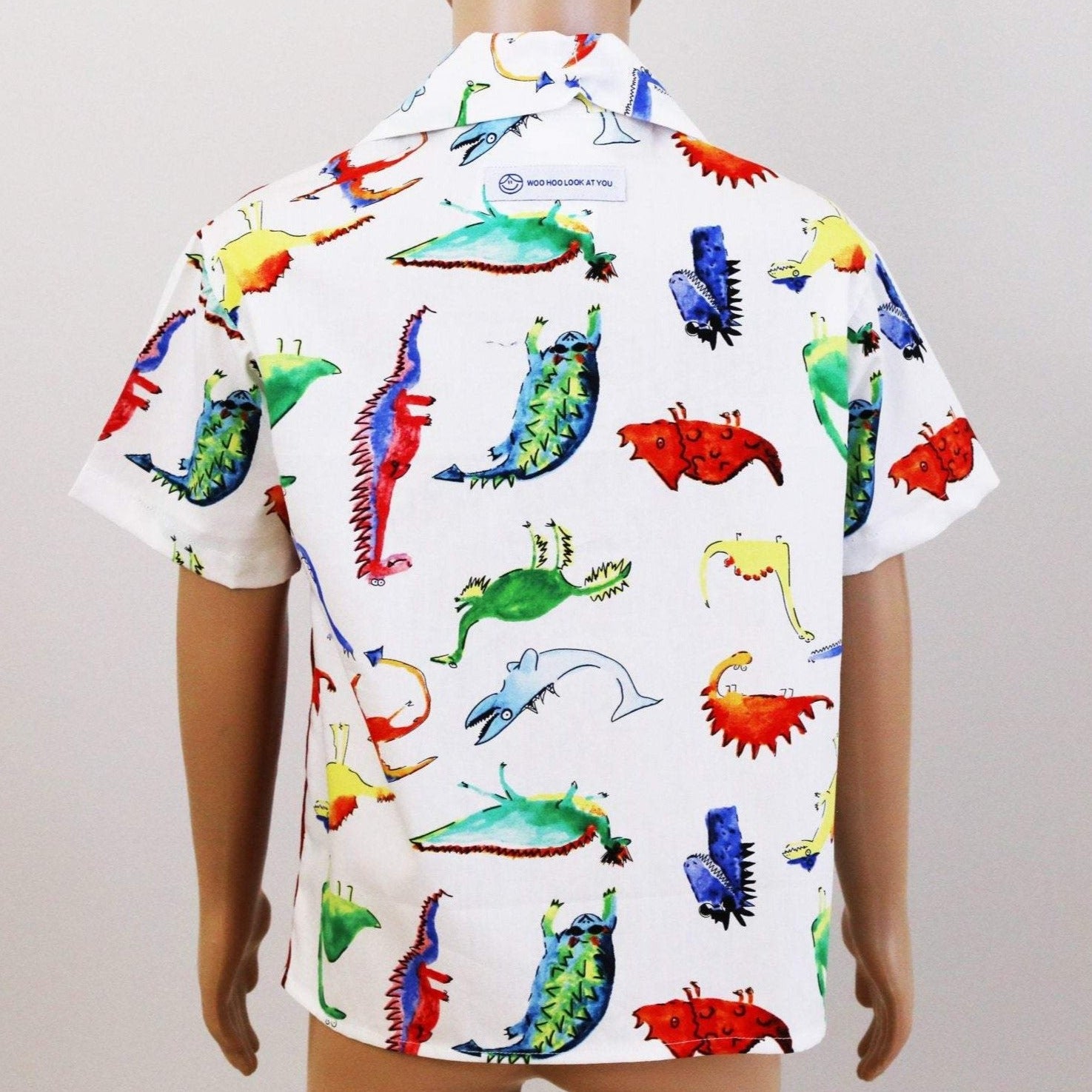 - The shirt has a myriad of dinosaurs, both land and sea printed all over in great bright colours
