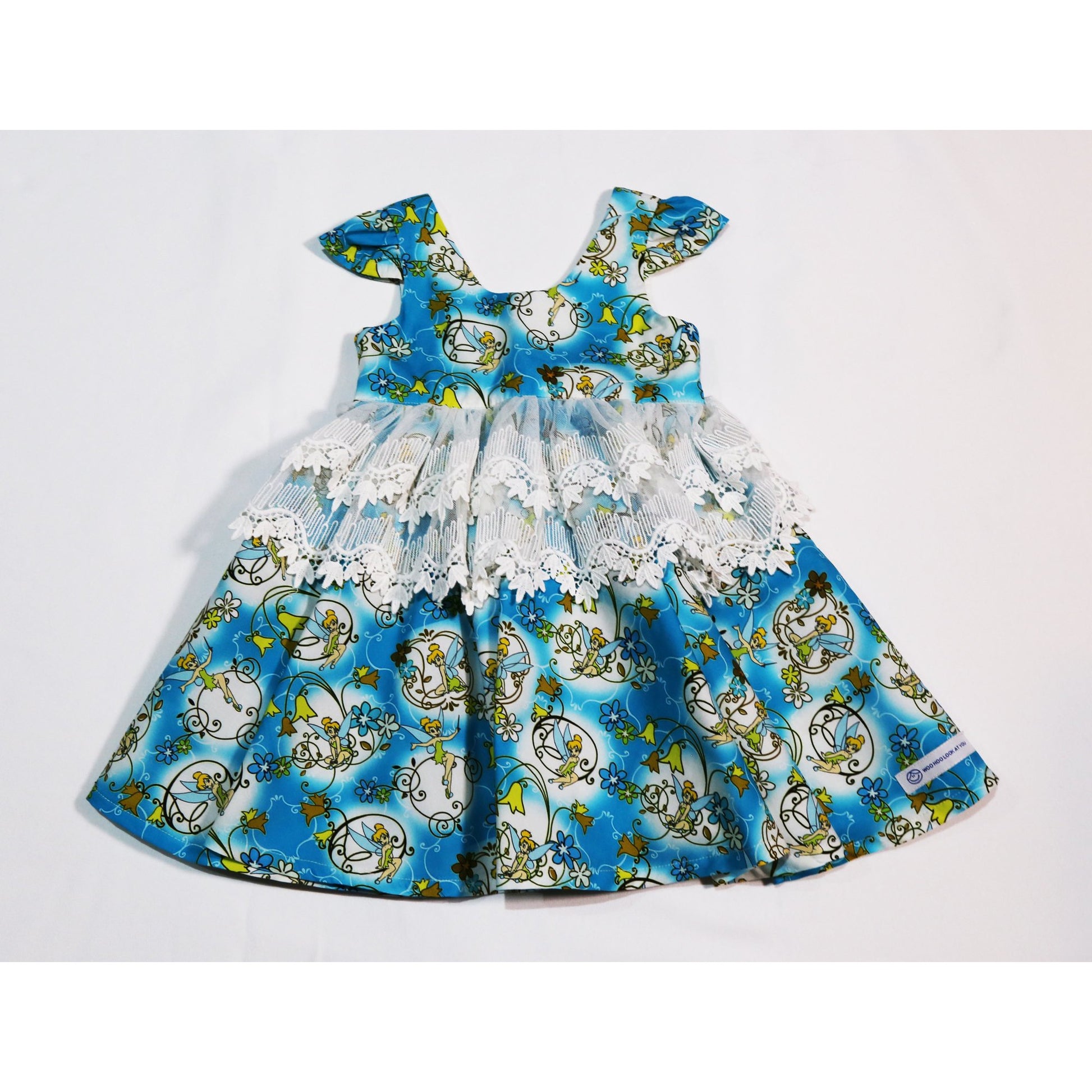 Dress - Capped Sleeves, Lace & Fairies on Electric Blue Fabric, Lace on Waistline