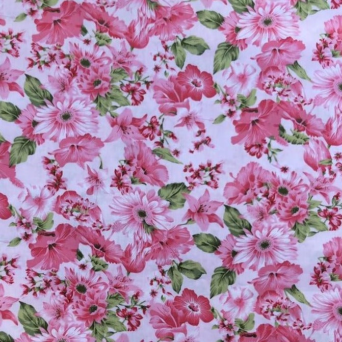 Pants - Harem - Ribbed Waist - Pink Flowers with White Bands