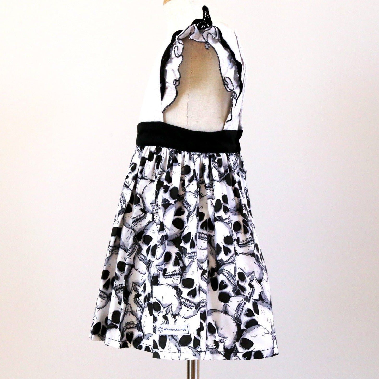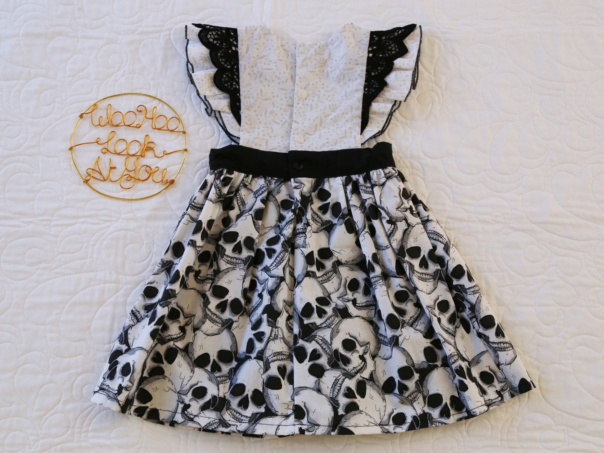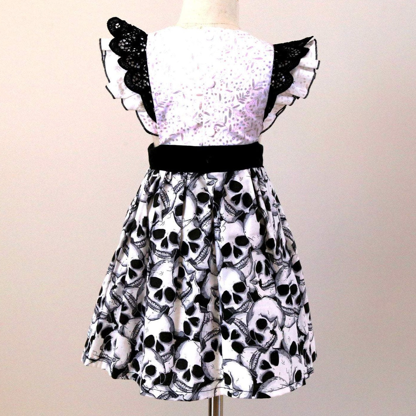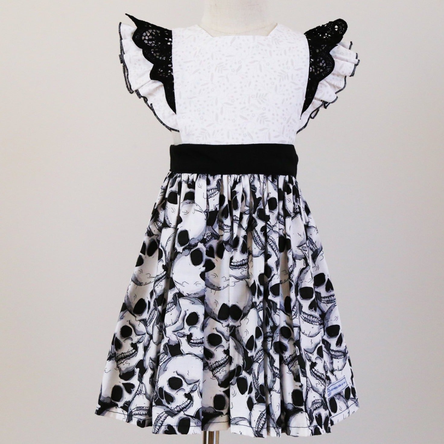Dress - Halloween - Emma Polly Large Skulls Black & White with Black Lace