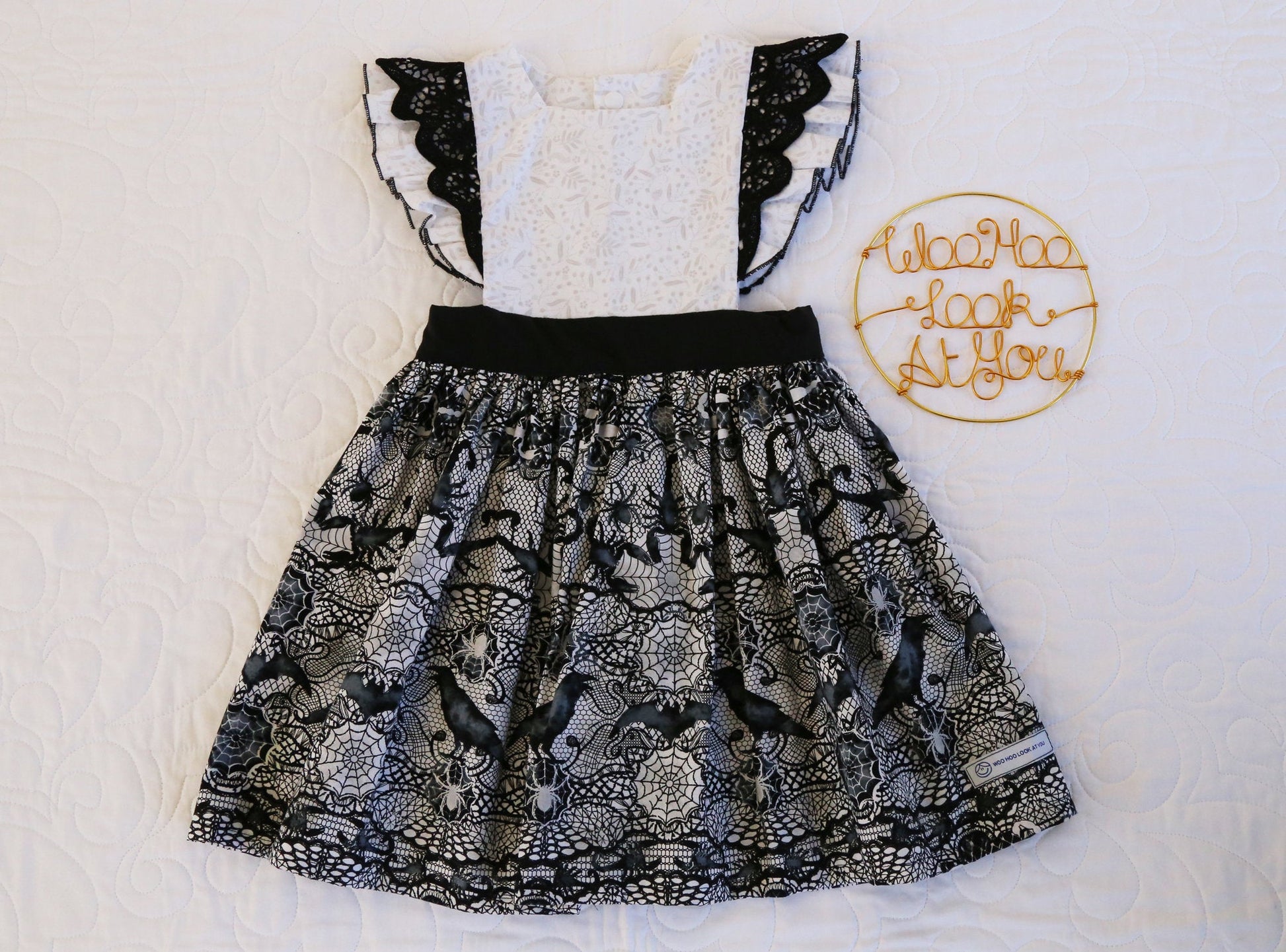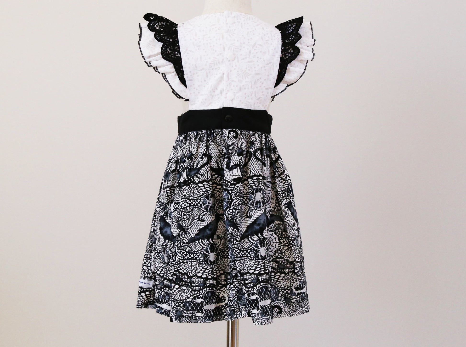 Dress - Halloween - Emma Polly Spiderweb Scorpions Crows Black & White with Black Lace Flutter